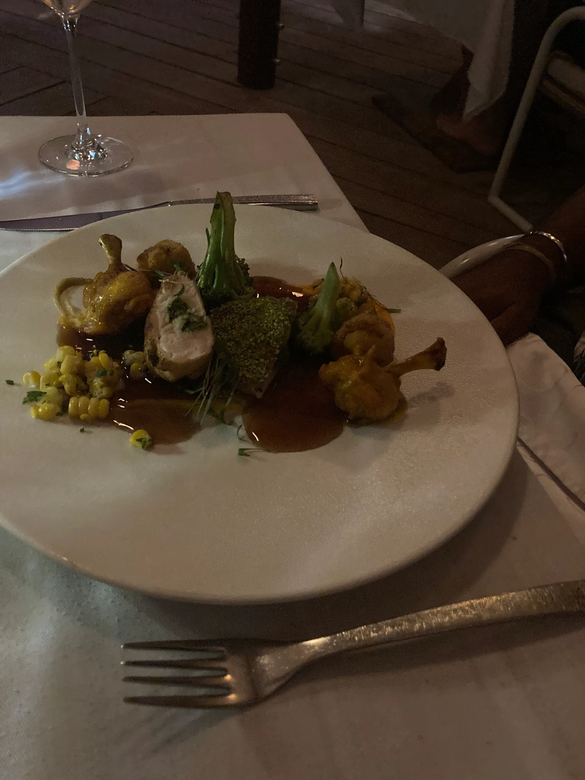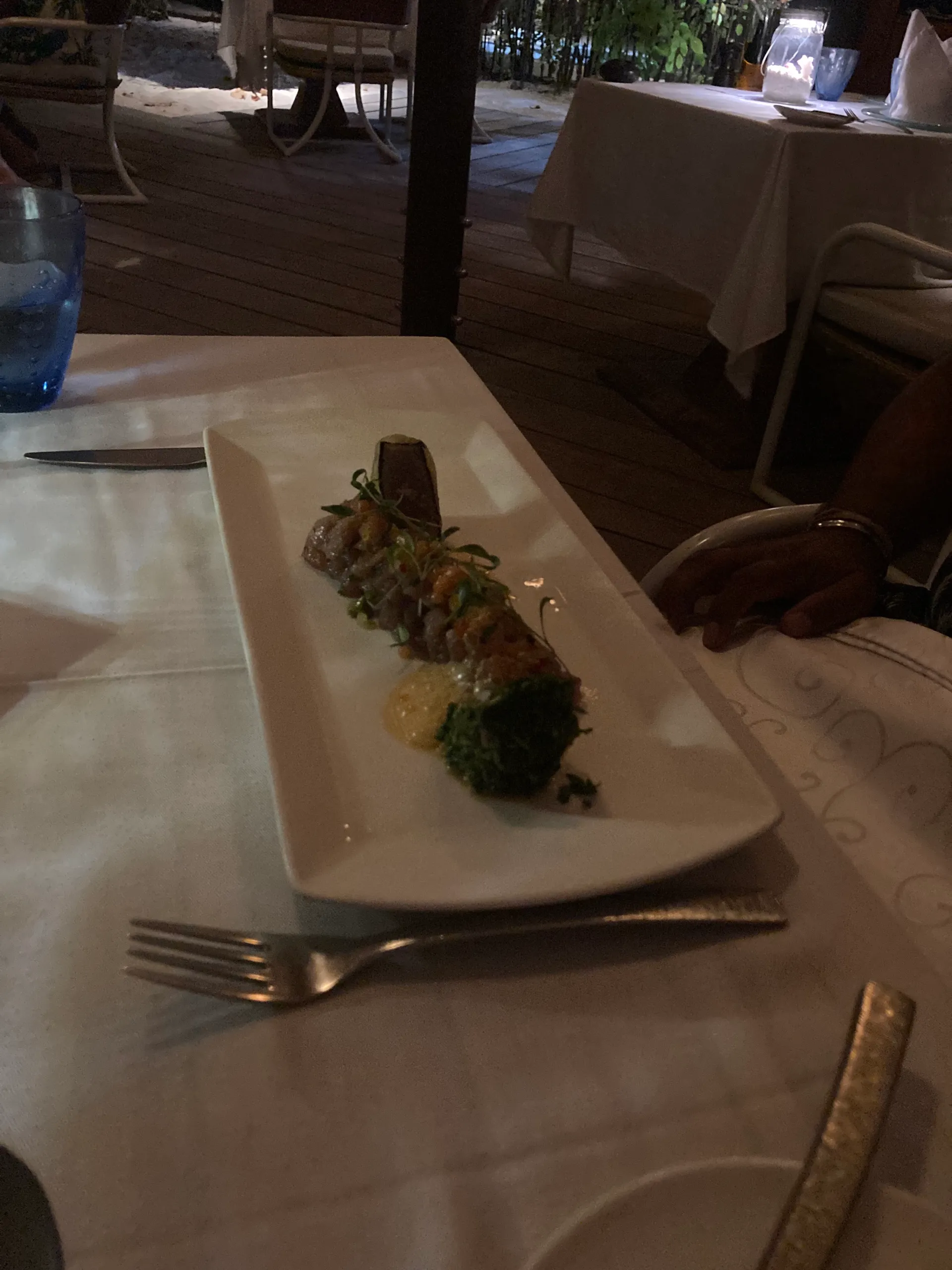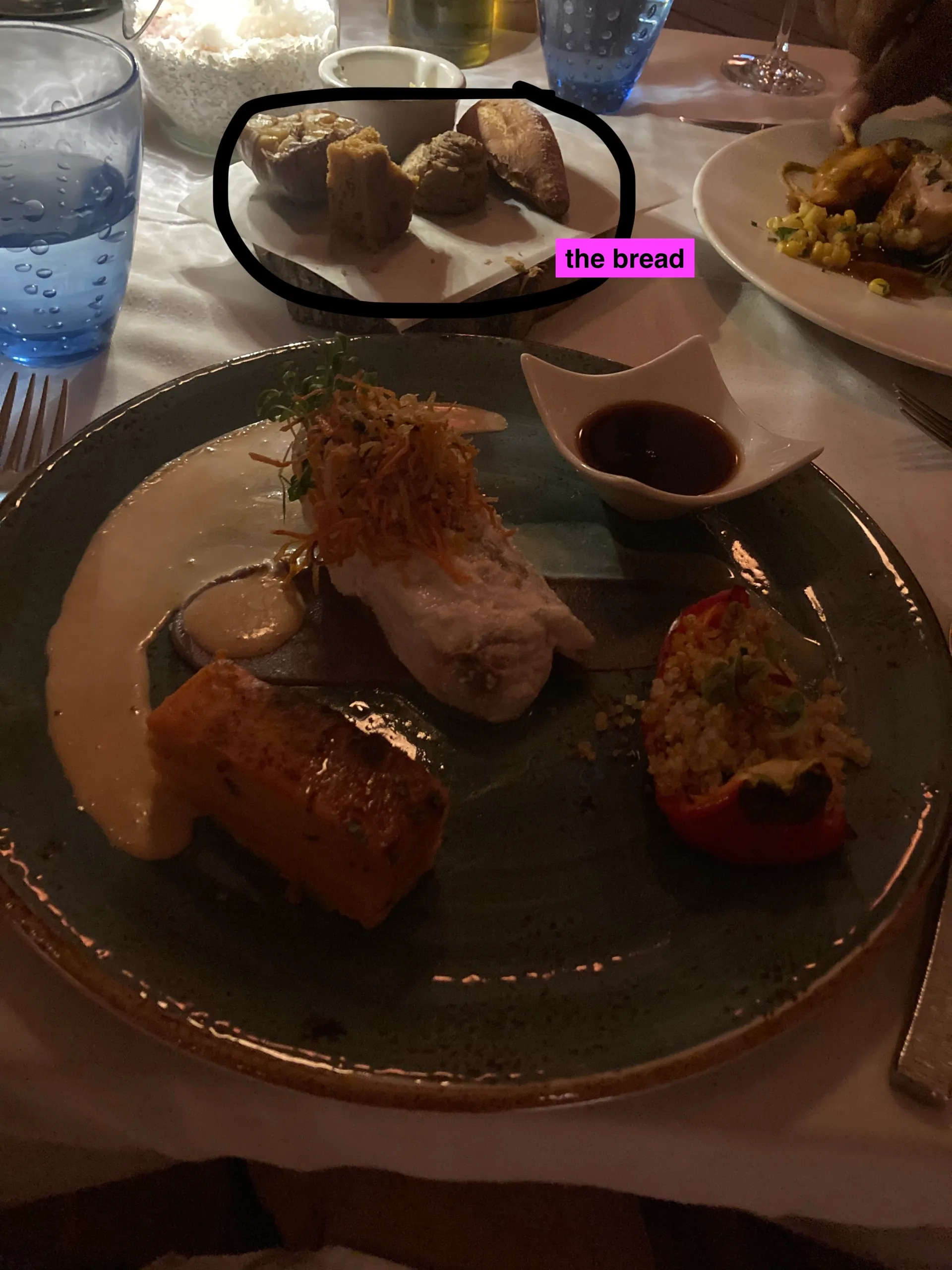 Constance Moofushi Resort has only 2 full restaurants (and a little beach restaurant that you can get lunch from ) Now I know what you may be thinking “just 2 restaurants?”. When we first arrived, that’s what I thought. I was a bit concerned that we would get bored with the same food every day for 10 days (can you imagine ?), but the food was delicious every night. The main restaurant serves breakfast and dinner daily. Breakfast is the spread you would expect from a 5 star resort, everything from eggs (any which way you want it), pancakes, cakes and bakes to the full English. Dinner is themed every night so you can expect Indian, seafood, Maldivian and everything else and they are ALL absolutely delicious. Amazing food and great variety. Lunch can be found at the beach bar restaurant. They have a small menu but really tasty (the burgers were really good ). The other full restaurant is the Alizee restaurant. Alizee is a slightly more upmarket, “dress up and enjoy 5 star cuisine” type of vibe. It has an a la carte menu and a fantastic wine list with incredible wines from around the world including South Africa (which imo has some of the best wine in the world). Like everything on the island, there’s an ocean view 🙂 The menu consists of dishes like leg of lamb, foie gras for starters (Mike’s favourite) and creme brûlée (my fave). I can’t describe adequately how delicious the food is so iv taken a whole lotta pics for you guys(obvs:)) Ps. the bread at Alizee is just so good. It’s served with truffle butter and slow roasted garlic. Just divine.